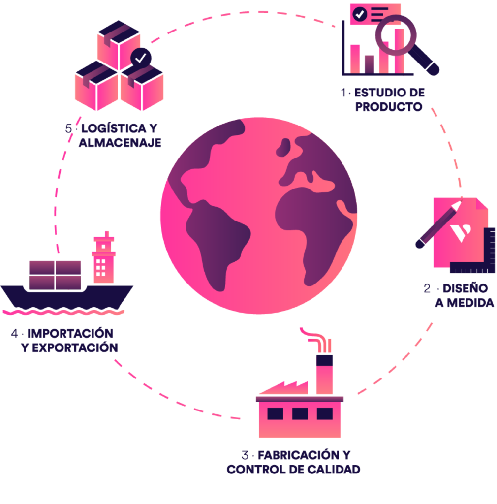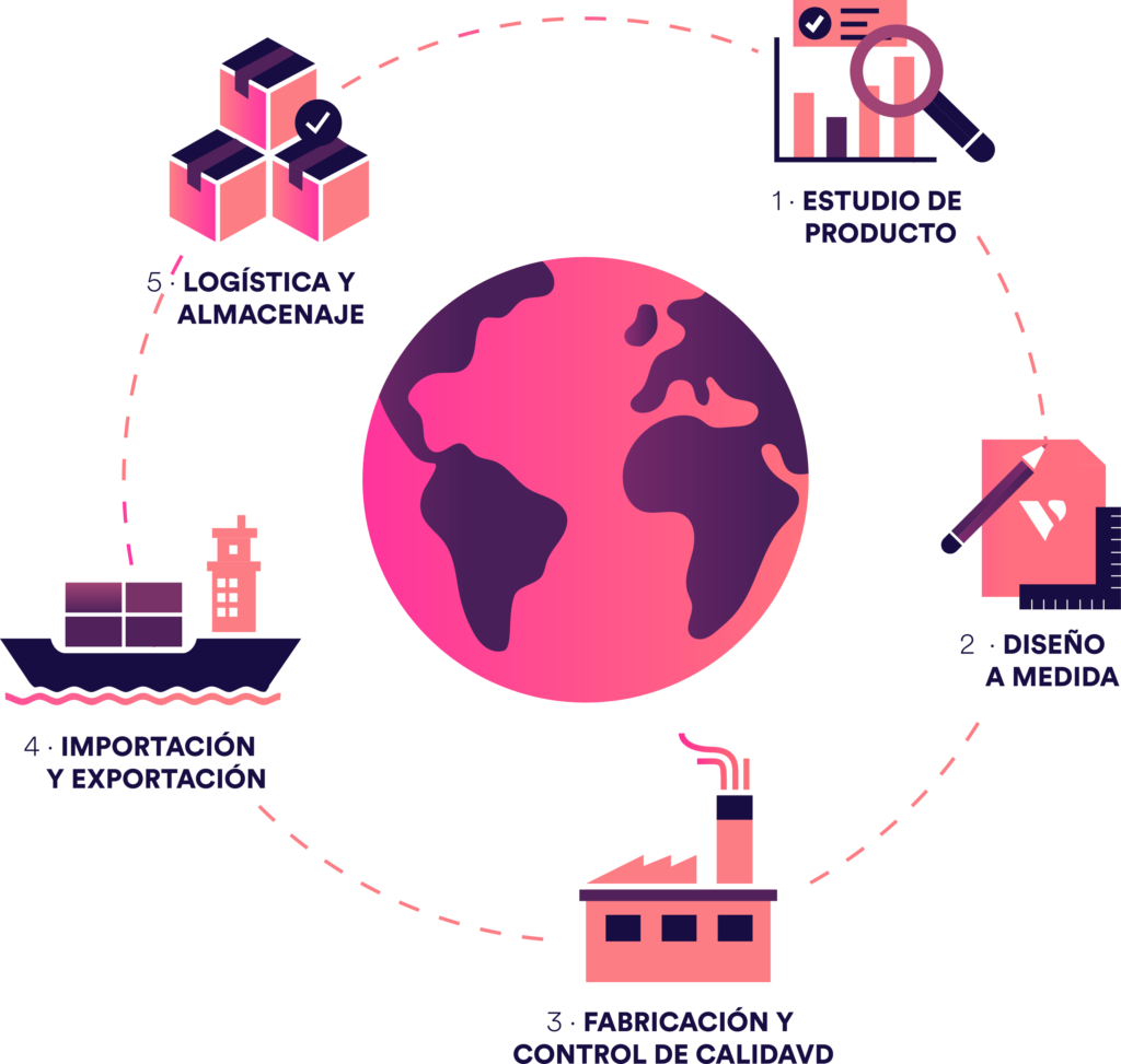 Ofrecemos un servicio integral que incluye diseño, producción, control de calidad, logística, almacenaje y gestión aduanera.